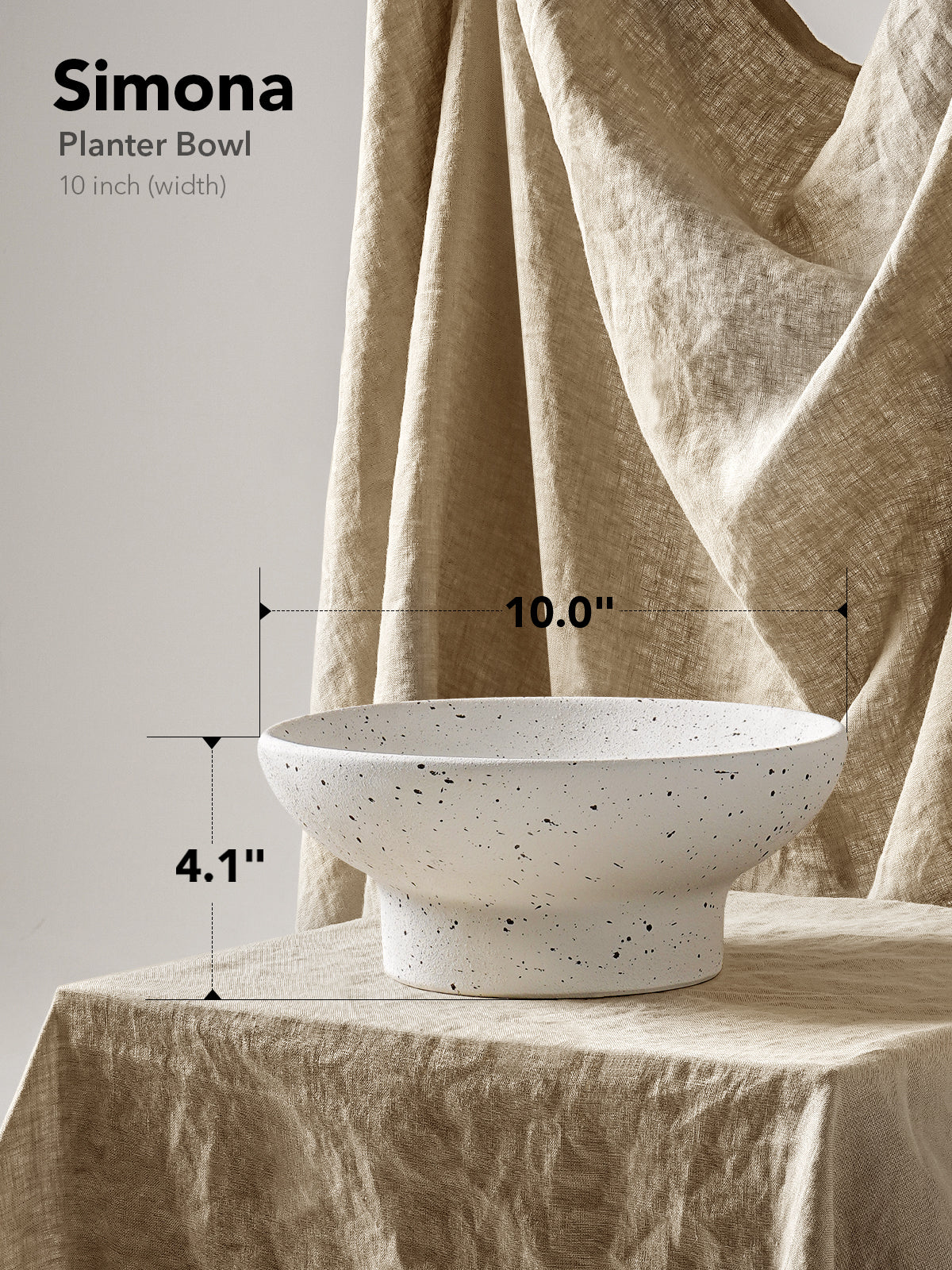 10" Ceramic Decorative Bowl, Modern Planter Bowl for Table Centerpiece, Fruit Bowl for Dining Table or Coffee Table Decor, White