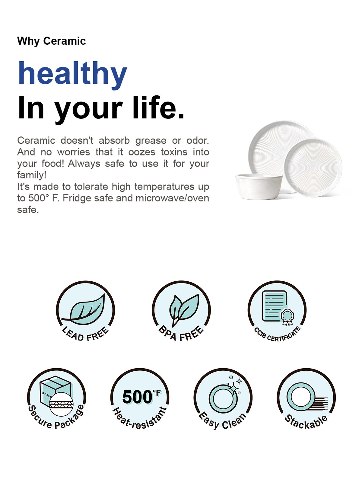- Material: Lead-Free Ceramic