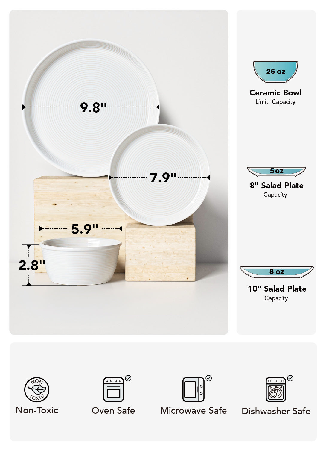 - Bowl Size: 5.9" (D) × 2.8" (H), 26 oz capacity