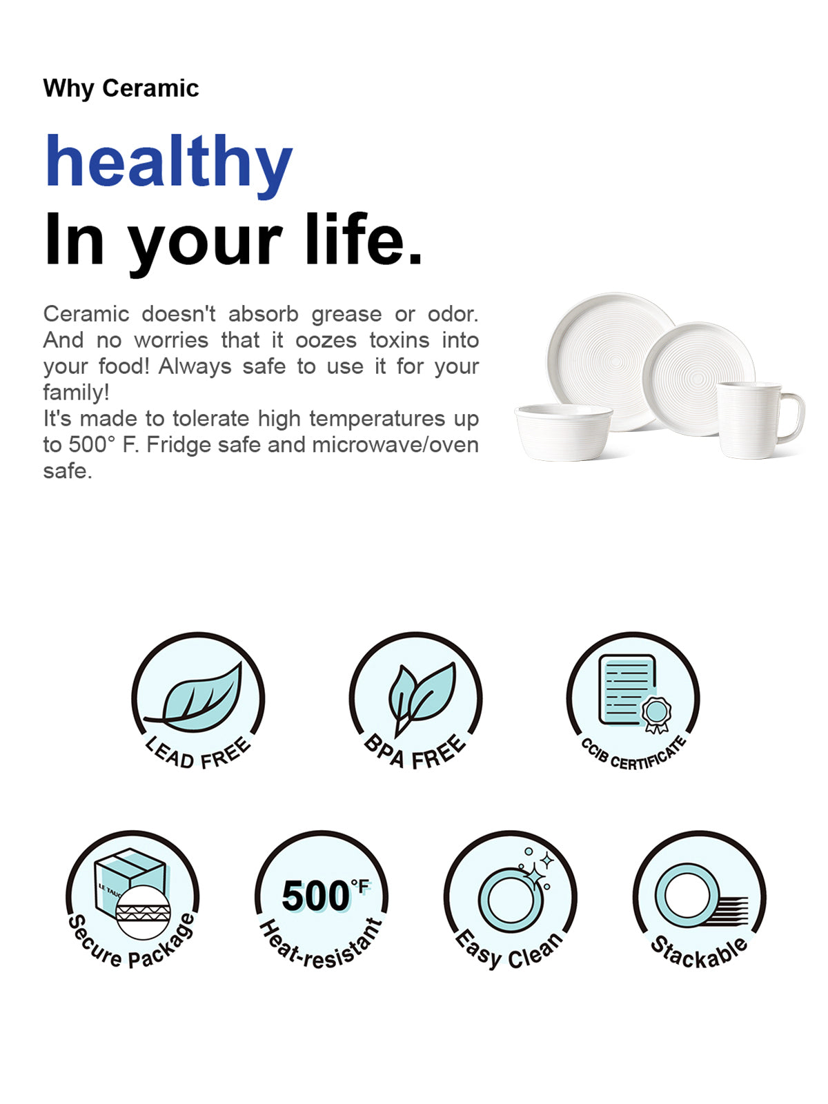 - Safe and Healthy Ceramic: Enjoy food with peace of mind. The non-toxic ceramic material is free of lead and BPA, won’t leach chemicals into your meals, and won’t absorb odors or grease. Certified by CCIB for food safety—ideal for everyday use by families, kids, or guests.