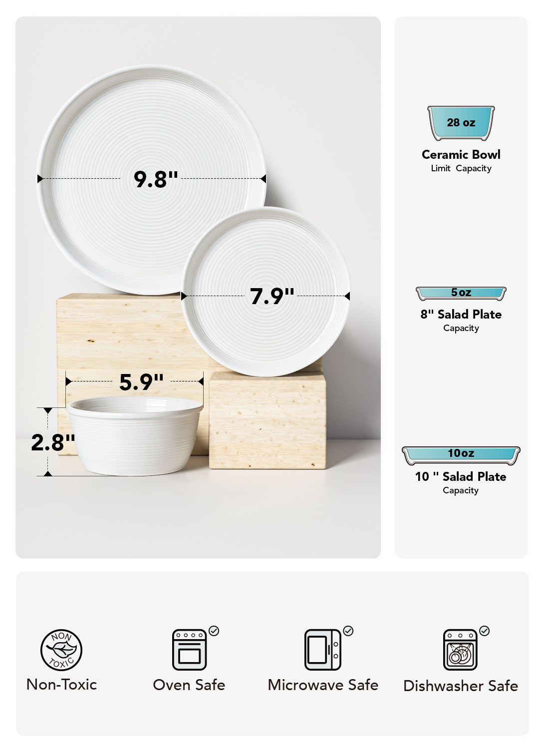 - Lead-Free, BPA-Free & Non-Toxic Glaze: Made from eco-conscious ceramic with a food-safe glaze that’s free from lead, cadmium, and BPA. Will not leach chemicals or absorb odors—safe for the whole family. Meets CCIB safety standards, making it a worry-free gift or upgrade to your kitchen essentials.
