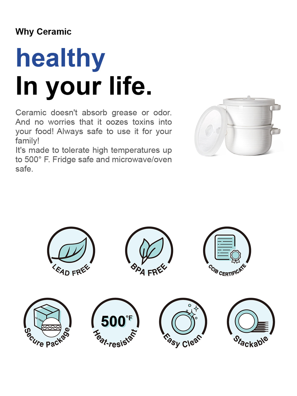 - Microwave and Oven Safe Up to 480°F: Both the ceramic bowl and silicone lid can handle temperatures up to 480°F. Suitable for use in the microwave or oven to reheat or cook foods such as soups, pasta, or side dishes.